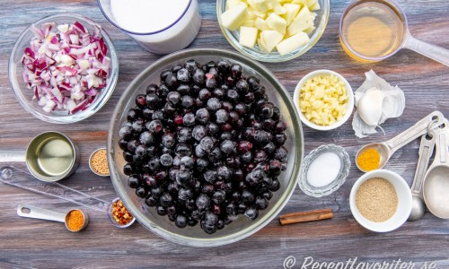 Du kan utesluta och byta ingredienser och kryddor efter tycke. Grunden är lök, vinäger, socker, chili och lite indiska kryddor.