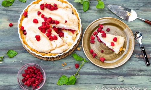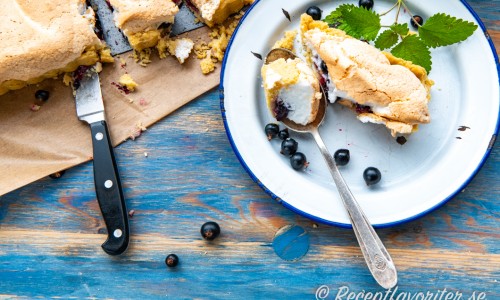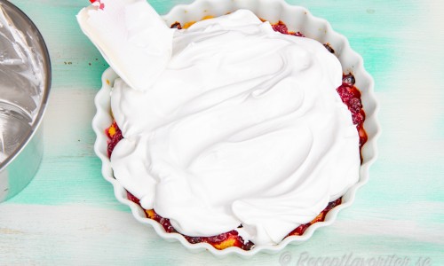 - Bred ut marängen i ett jämt lager på citronpajen gärna så att det blir små toppar här och där.