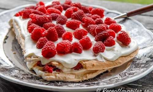 - Innan servering så ska marängen få färg. Det kan du göra i ugnen eller med gasbrännare.
