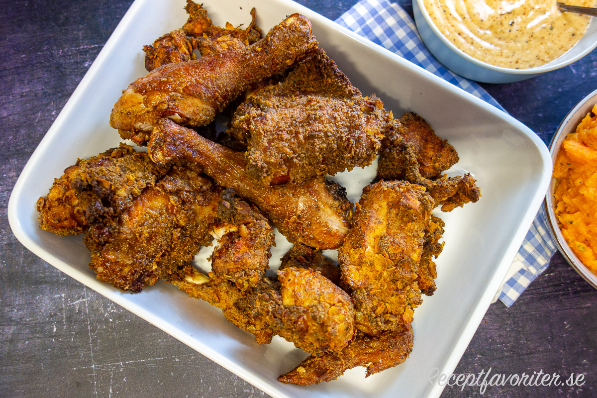 Friterad kyckling i delar som först marineras och sedan vänds i panering samt friteras knaprig och saftig på amerikanskt soul food vis.