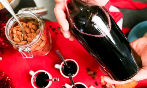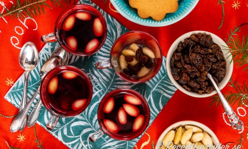Hallonglögg - en frisk, nyttig, god och alkoholfri glöggvariant med hallonjuice, glöggkryddor och valfri mängd socker.