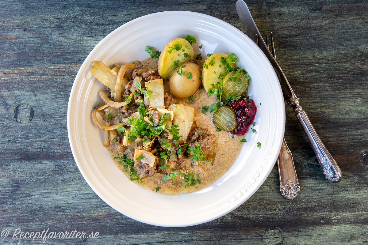 - Servera med kokt potatis, lingonsylt eller rårörda lingon samt smörgåsgurka, inlagd gurka eller pressgurka.