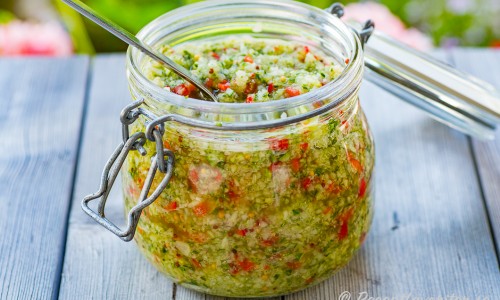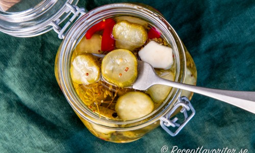- Med pepparrot- tillsätt 0,5 dl grovhackad färsk pepparrot tillsammans med gurkan. Blir extra hållbar och får god smak.