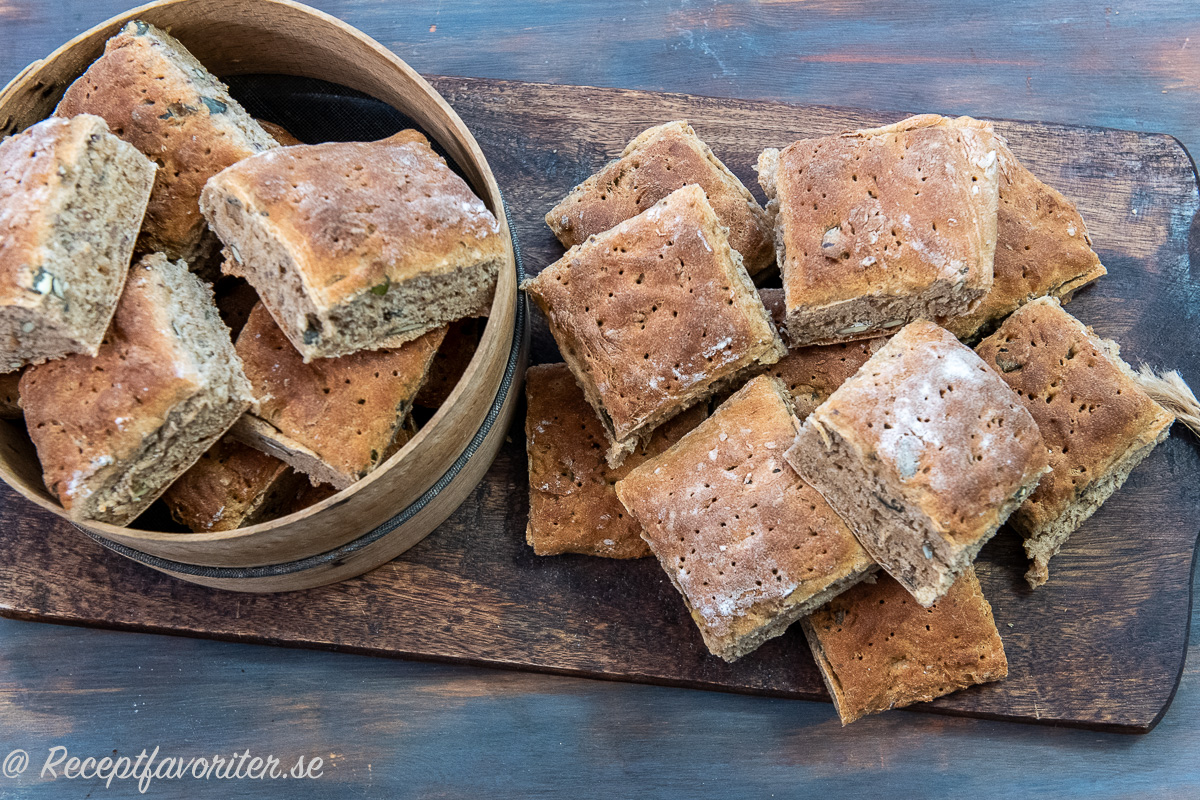 - Dela på brödet i rutorna och servera nybakta. De kan även frysas in.