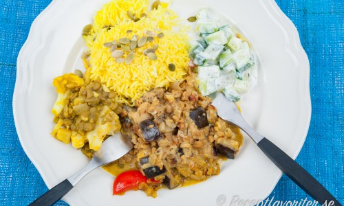 Du kan tillsätta mer grönsaker i grytan om du vill ex. tärnad stekt aubergine eller zucchini; skivad svamp som champinjoner, kokta kikärter eller vita bönor; gröna sojabönor, buketter av blomkål eller broccoli; tärnad morot med mera.