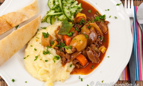 8. Smaka av sojagrytbits- och tomatsåsen med salt och peppar. Servera till önskade tillbehör.