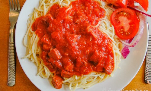 5. Spagettin är klar att servera. Ha ev. lite extra riven ost samt flingsalt till. Även bröd och dricka till när det hettar till för mycket.