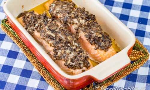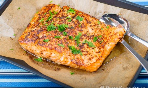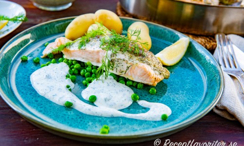 - Sätt in i ugnen och låt gå tills laxköttet skivar sig. Det tar ca 20 minuter.