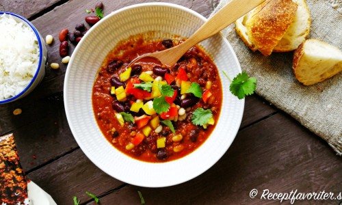 Här har jag använt Anammas vegobitar av sojaprotein men man kan ta valfritt sojaprotein.