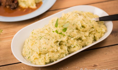 - Smaka av potatismoset med salt och peppar. Rör i hackad persilja.