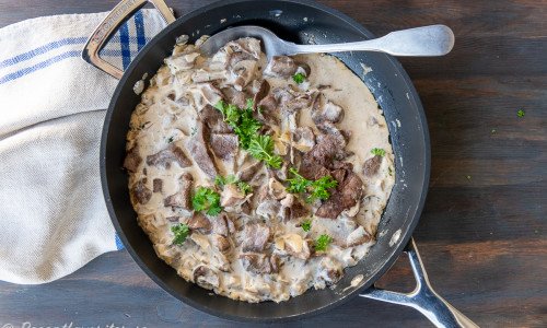 Min lövbiffgryta blir riktigt krämig och god med svamp, grädde, mascarpone, crème fraiche, vitt vin,...